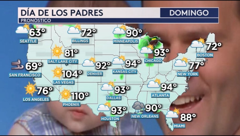 •Pronóstico nacional para el Día de los Padres este domingo: condiciones espectaculares y secas para gran parte del país excepto la costa del Golfo, que estaremos vigilando la próxima semana para un aumento en humedad tropical