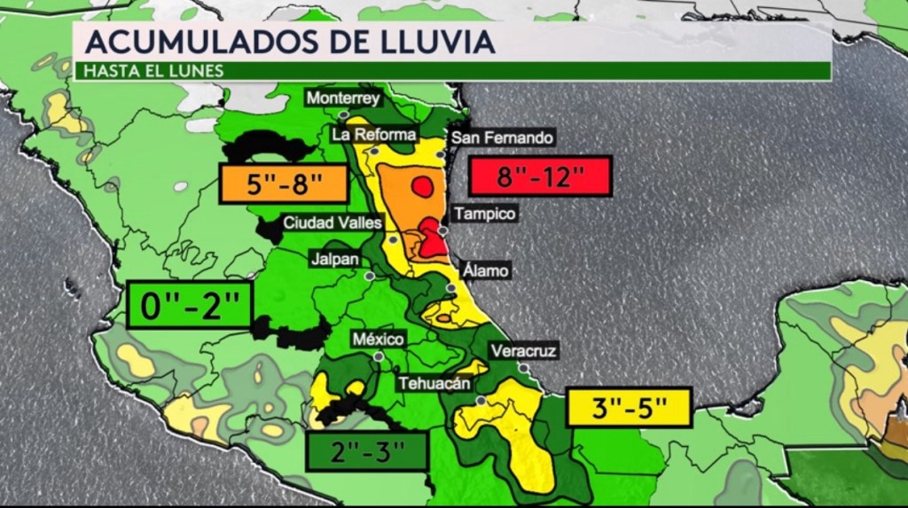 •Acumulados de lluvia hasta el lunes para México