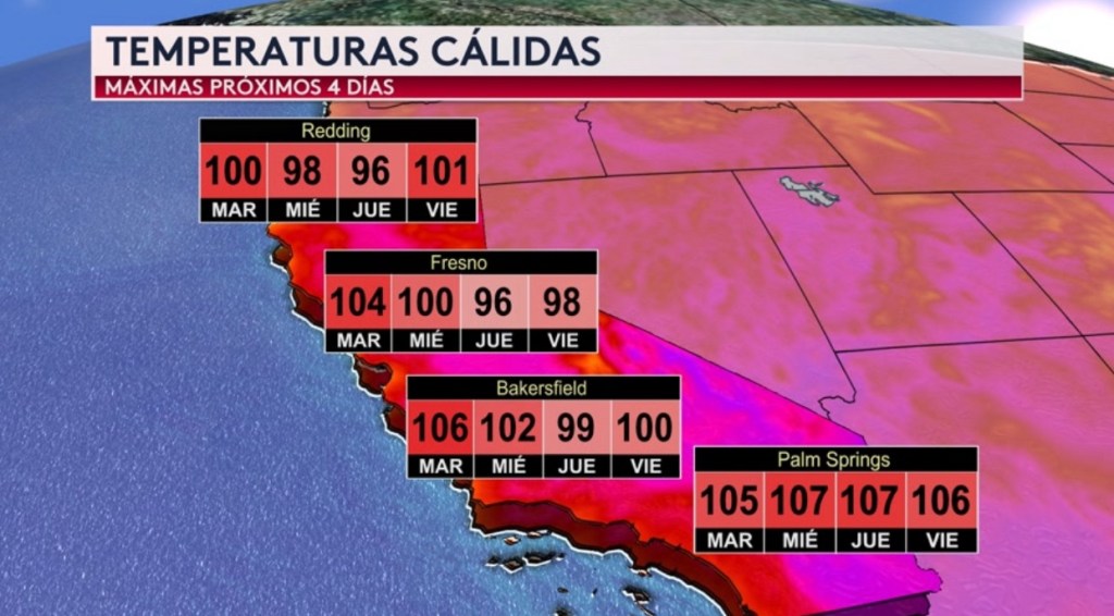•No hay alivio por la noche debido a las temperaturas mínimas cálidas en los 70° y 80°