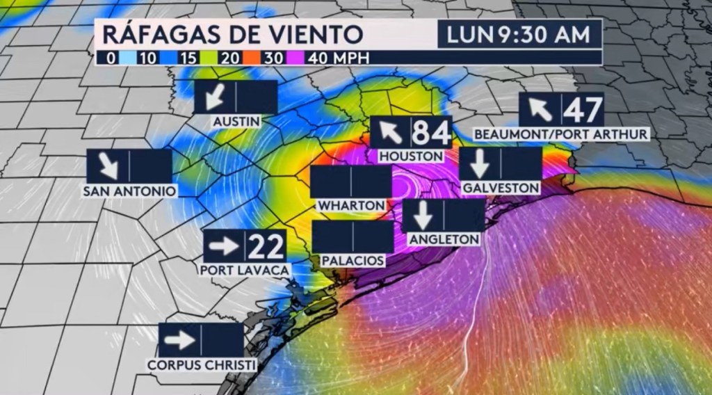 •Ráfagas de viento a esta hora: ¡Houston está registrando una ráfaga de 84 mph!