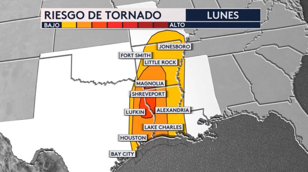•Seguro que habrán más vigilancias por tornado emitidas durante el transcurso d día ya que el riesgo general se extiende desde Texas hasta Missouri con el riesgo mayor para el noreste de Texas, el noroeste de Louisiana y suroeste de Arkansas