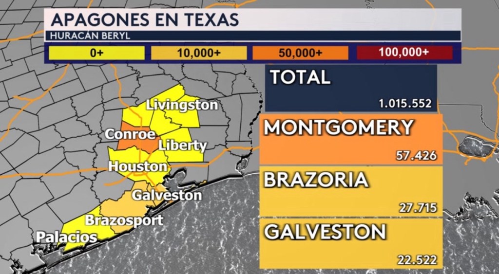 •Siguen los apagones en el sureste de Texas que incluyen la área metropolitana de Houston. Más de un millón de personas siguen sin electricidad esta mañana con el condado de Montgomery (donde se encuentra la ciudad de Conroe) siendo el más afectado