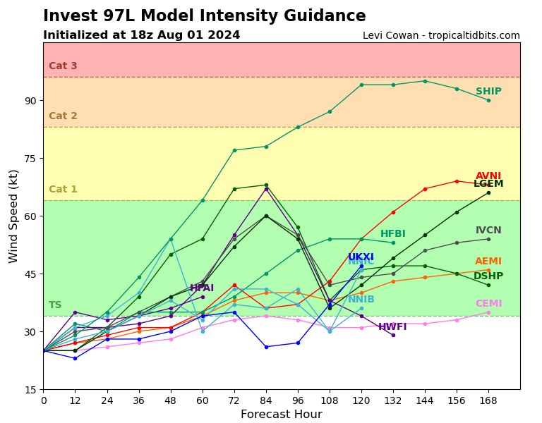 •Modelos de intensidad para la Invest 97L / Posible Ciclón Tropical Debby
