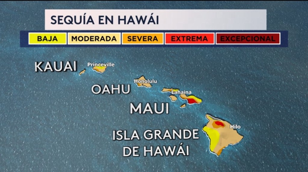 •Cualquier tipo de lluvia sería beneficioso para Hawái ya que las islas se encuentran bajo una sequía moderada a extrema, especialmente en la isla grande de Hawái y Maui