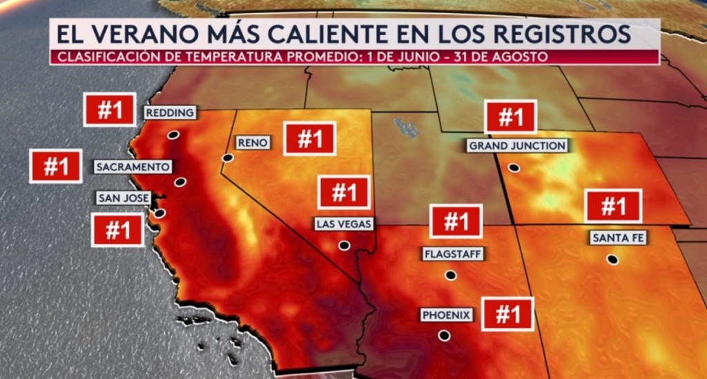 •Algunas de las ciudades afectadas por esta nueva ola de calor acabaron de experimentar el verano más caliente en los registros como Phoenix, Las Vegas y Sacramento. Esto es según la temperatura promedio desde el 1 de junio hasta el 31 de agosto