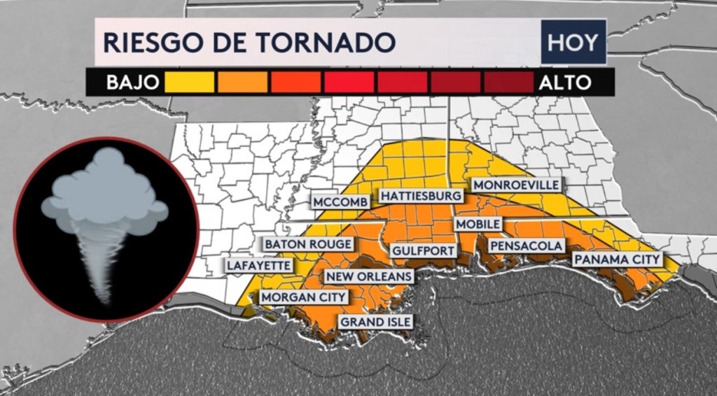 •Al lado derecho de Francine dentro de las bandas externas hoy son posibles los tornados. Los estados afectados serán Louisiana, Mississippi, Alabama y Florida. Algunas ciudades bajo riesgo son New Orleans, Baton Rouge, Mccomb, Gulfport, Mobile, Pensacola y Panama City