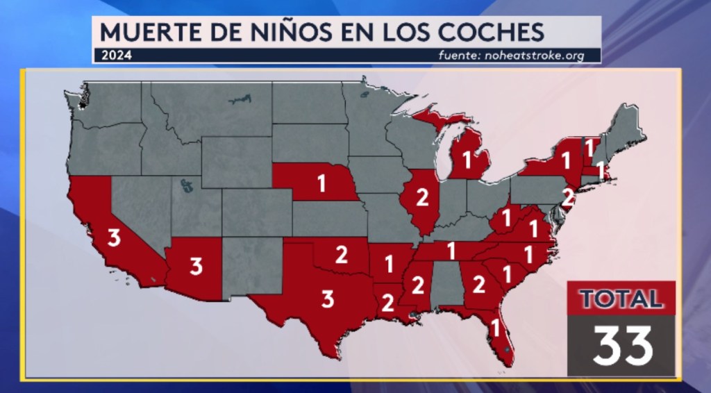 •En lo que va del año, 33 niños han perdido la vida por haber sido dejados/olvidados en los autos calientes. Esto supera la cantidad de muertes que se observaron el año pasado (29). La temperatura al exterior más baja en donde se registro unas de estás muertes fue 77°. No se necesitan temperaturas en los 90° o tres dígitos al exterior para crear condiciones peligrosas en los autos