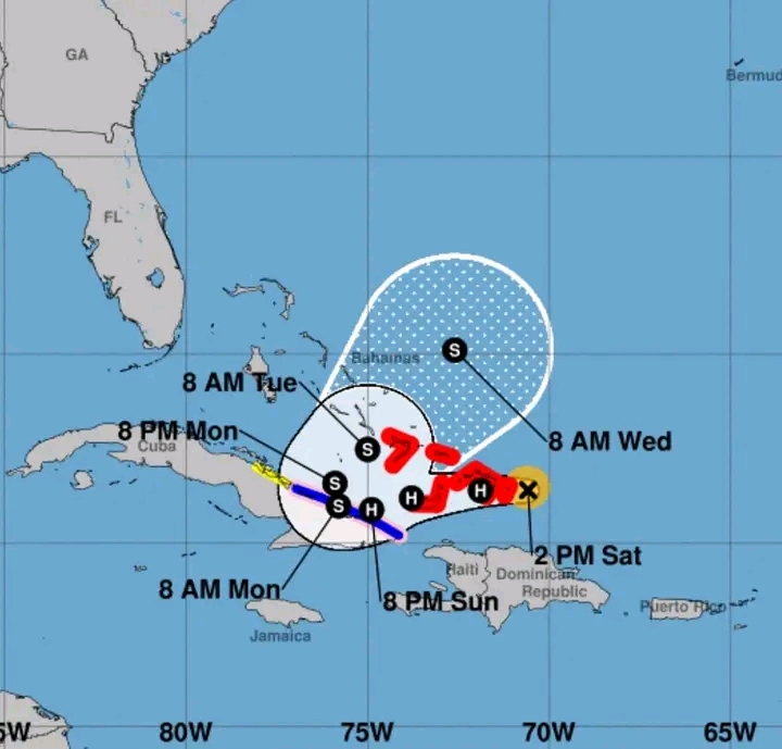 •En las próximas 12 a 24 horas este huracán continuará con un rumbo entre el oeste y oeste-suroeste, ganando algo más en intensidad. Este sistema transitará hoy sobre los mares al norte de República Dominicana, Haití y las Bahamas orientales, aproximándose a la región oriental de Cuba a partir de mañana domingo, donde comenzará a disminuir paulatinamente su velocidad de traslación.