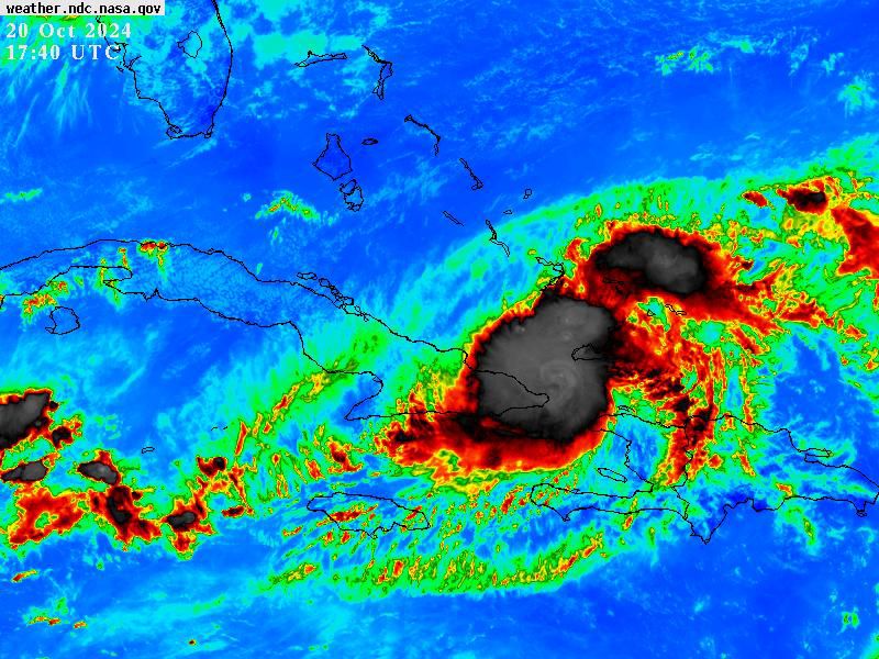 •En la más reciente información el centro de circulación de Oscar se localizó en los 20.6 °Norte y 74.1 °Oeste posición que lo sitúa a 130 kilómetros al Este-Noreste de Guantánamo, Cuba con vientos máximos sostenidos de 130 kilómetros por hora, presión mínima central de 986 mb mientras se mueve al Oeste-Suroeste a 11 kilómetros por hora.