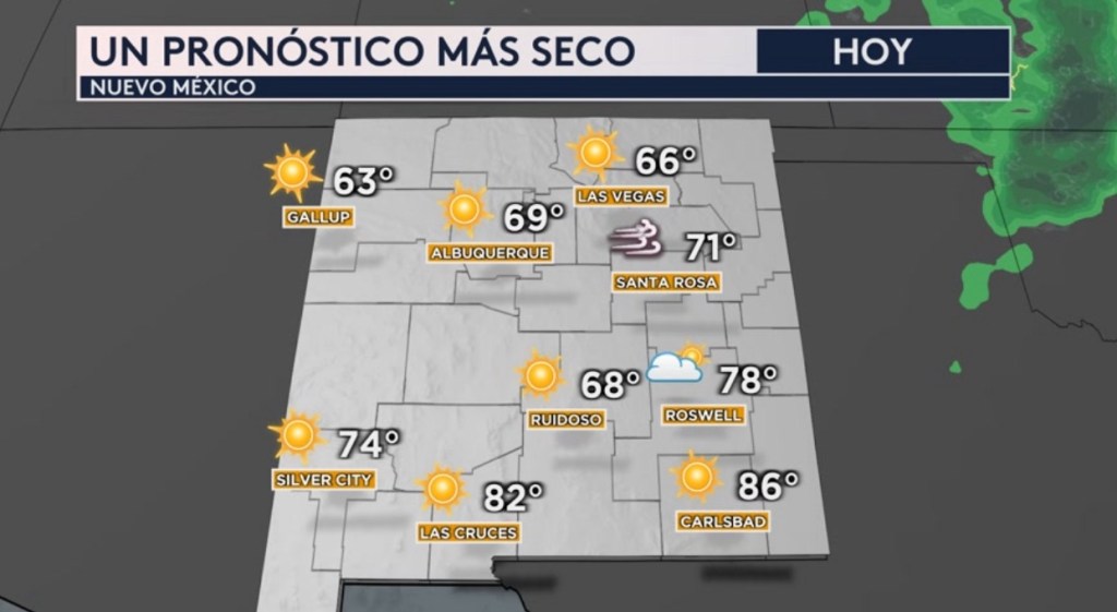 •Afortunadamente se espera un pronóstico más seco hoy para el estado entero de Nuevo México.