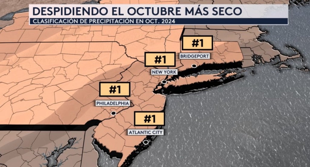 •Además de las temperaturas veraniegas, estas ciudades también acabaron de experimentar el octubre más seco en los registros. Nueva York, Filadelfia, Atlantic City y Allentown ni si quiera recibieron una mitad de pulgada el mes pasado.