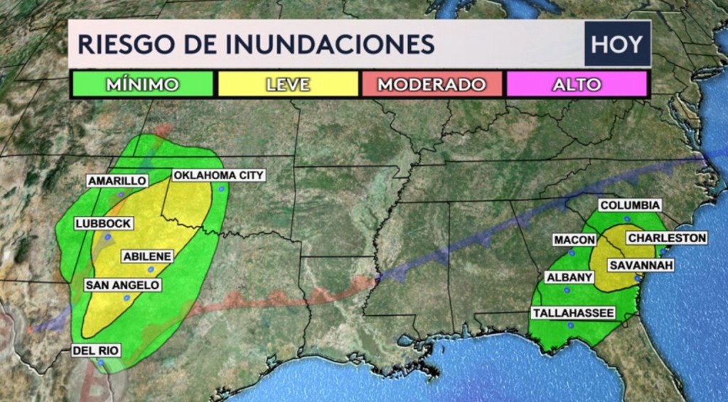 •Con este sistema frontal y un frente estacionario al este del país, habrá dos zonas de fuertes lluvias que estaremos monitoreando para las posibles inundaciones. Desde Texas hasta Kansas y desde el norte de Florida hasta Carolina del Sur.