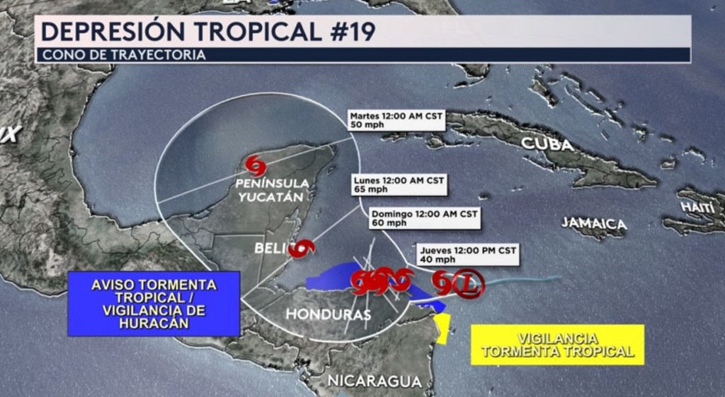 En Belice, se pronostican entre 1 a 2 pies de lluvia y hasta un pie en Quintana Roo, México. Estos acumulados son válidos hasta el lunes por la mañana.