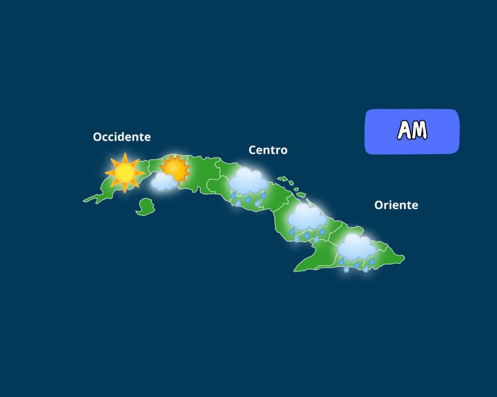 ⛅🌧️Estará amaneciendo con predominio de nublados en gran parte del archipiélago cubano con la ocurrencia de algunos chubascos y lluvias hacia localidades de la mitad oriental, las que serán más aisladas en el resto del país. En la tarde persistirán los nublados en el territorio nacional con numerosas lluvias en occidente y centro, siendo más aisladas en el oriente.