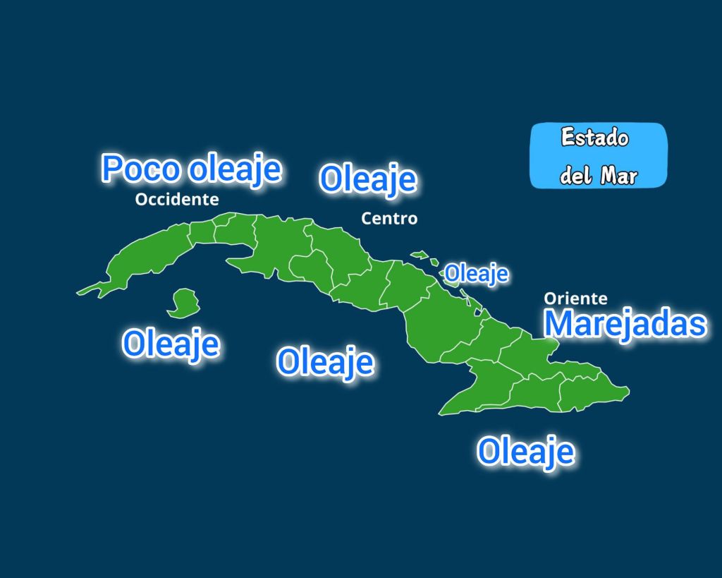 🌊Habrá marejadas en el norte oriental disminuyendo a oleaje en horas de la tarde. Predominará el oleaje al norte de Camagüey, en el sur oriental, así como en la costa norte occidental, en esta última región disminuirá gradualmente a poco oleaje desde la tarde. En el resto de los litorales habrá poco oleaje.