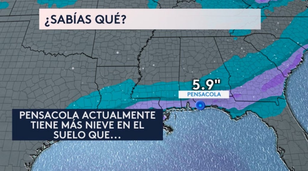 •Está mañana se observa un profundidad de nieve de 5.9” en Pensacola, una ciudad que se encuentra en el panhandle de Florida.