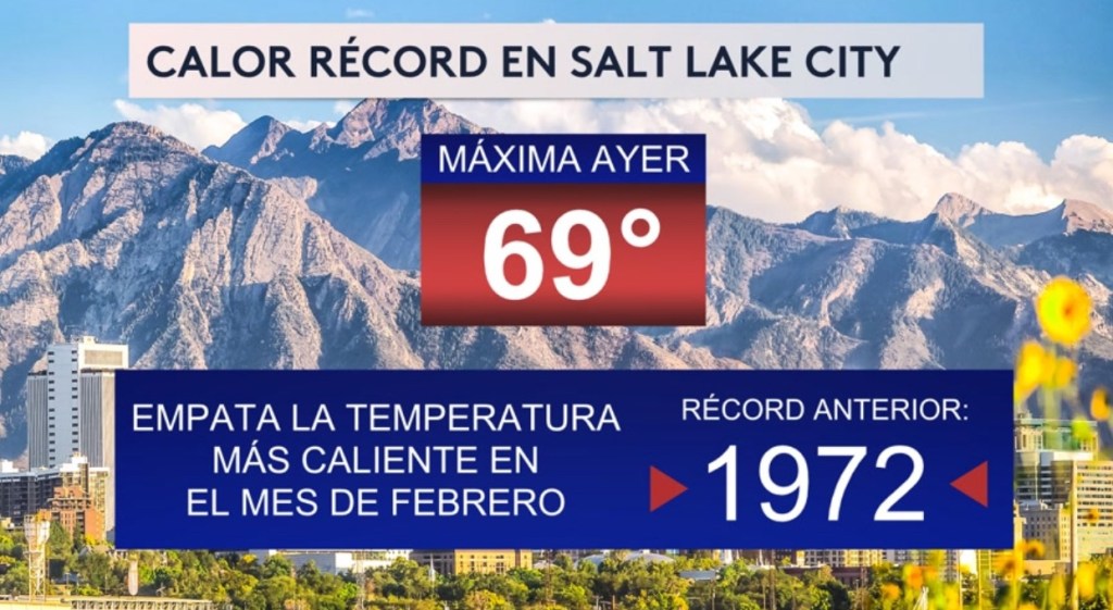 •¡La ciudad de Salt Lake City en el estado de Utah observó una temperatura máxima de 69°F ayer, la cual empata el récord de la temperatura máxima más caliente en el mes de febrero en los registros! Ese récord se estableció en el año 1972.