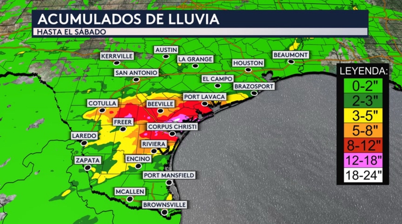 •Hay fuertes lluvias en camino para Texas y por ello se ha emitido una vigilancia por inundaciones para ciudades como Corpus Christi, Laredo, Zapata, Port Lavaca y Bay City.