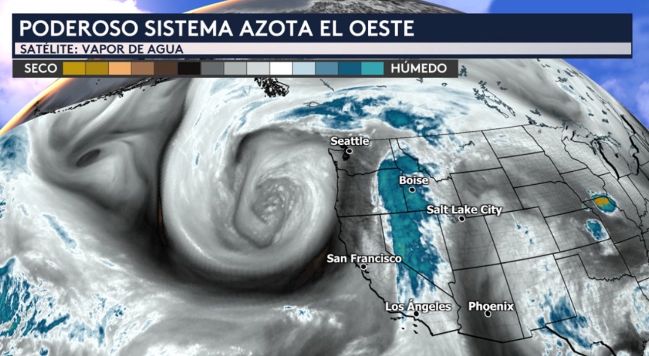 •Este poderoso sistema seguirá trayendo lluvias dispersas a la costa oeste de EE. UU. y los estados de Washington, Oregon y California hoy con el potencial de que la actividad de lluvia más fuerte provoque inundaciones. Además de lo que ya ha caído, se pronostican hasta 5 pulgadas adicionales de lluvia en la costa y hasta 3 pies de nieve en las montañas. El oleaje, como antes mencionado, pudiera llegar a una altura peligrosa y dañina de hasta 32 pies, específicamente para la costa sur de Oregon. Las ráfagas de viento también serán fuertes para los estados de Oregon, California y Nevada. Estos impactos durarán al menos hasta mañana.