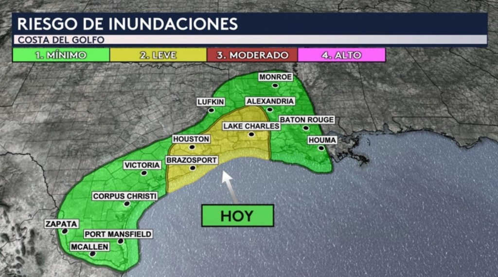 Ciudades como Corpus Christi, McAllen, Brownsville, Victoria y Lufkin en Texas y Monroe, Shreveport, Alexandria y Baton Rouge en Louisiana estarán bajo un riesgo mínimo (nivel 1 de 4 en la escala de severidad).