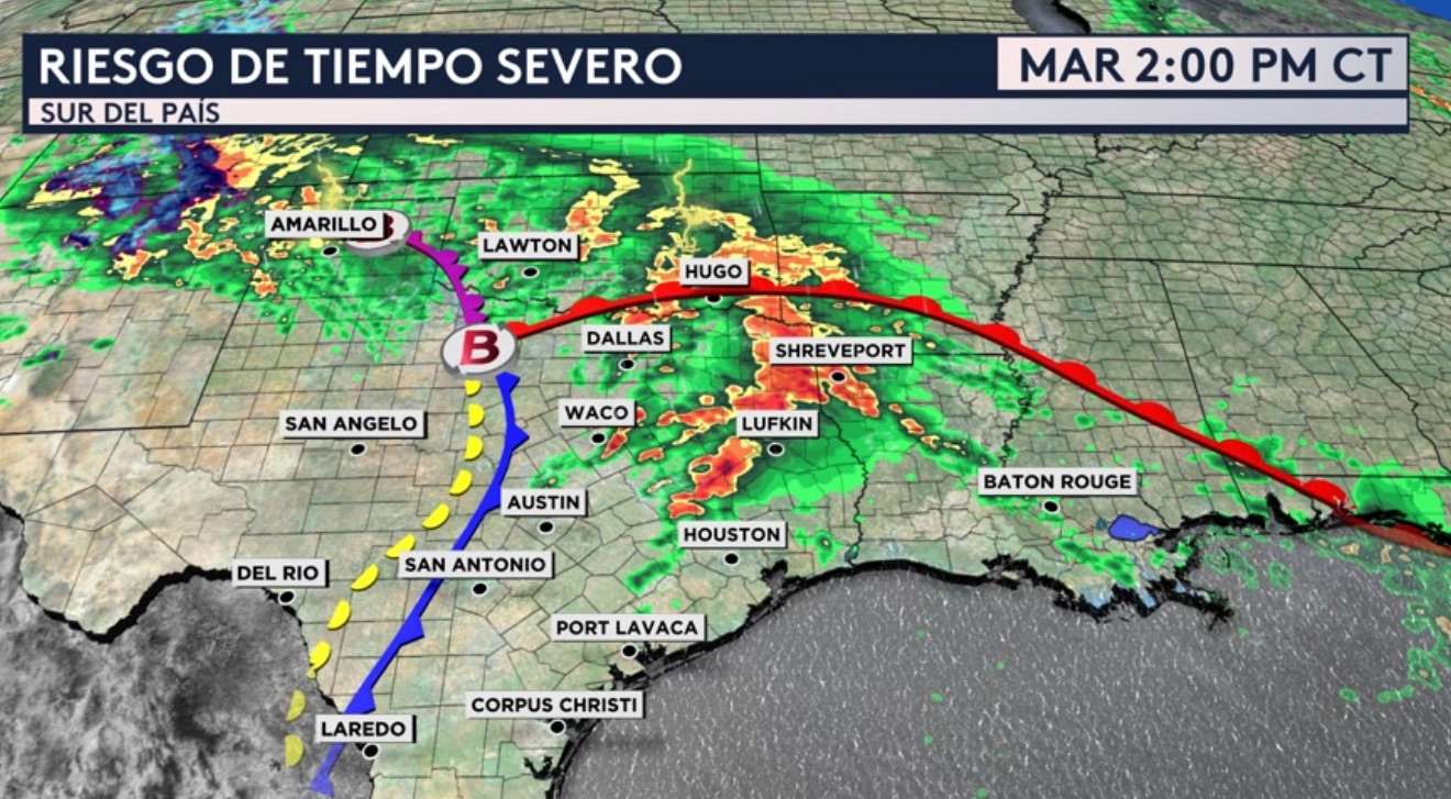 El riesgo general de tornados de extiende desde Texas hasta Mississippi y también incluye ciudades como Dallas, Abilene, Austin, San Antonio, Galveston, Shreveport, Baton Rouge, Lafayette, New Orleans y Mccomb.