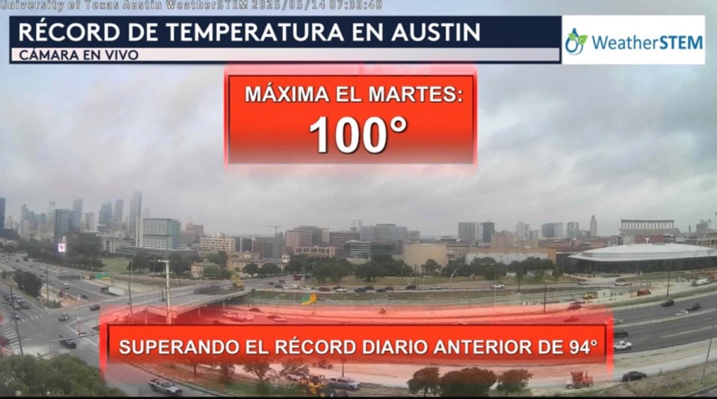 •Austin, al igual que varias otras ciudades a través de Texas, otra vez experimentarán un calor excesivo hoy. Se pronostica que las temperaturas máximas estén en los tres dígitos para ciudades como San Antonio, Austin, Uvalde, Del Río, San Angelo, Dallas, Abilene, Laredo y McAllen.