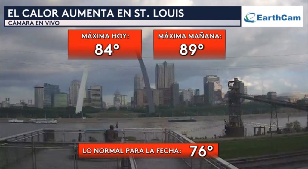 •Pero no solo estaremos hablando del calor en Texas sino también hacia el Medio Oeste donde país. Vemos una cámara en vivo desde la ciudad de St. Louis en Missouri donde hoy la temperatura máxima será 84° y mañana estará subiendo a los 89°. Lo normal para la fecha es 76°.