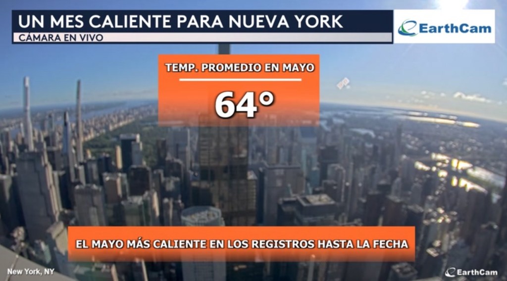 •Vemos una cámara en vivo desde la ciudad de Nueva York, donde los residentes han pasado calor este mes. La temperatura promedio en el mes de mayo hasta la fecha ha sido de 64°, clasificándolo como el comienzo de mes más caliente en los registros.