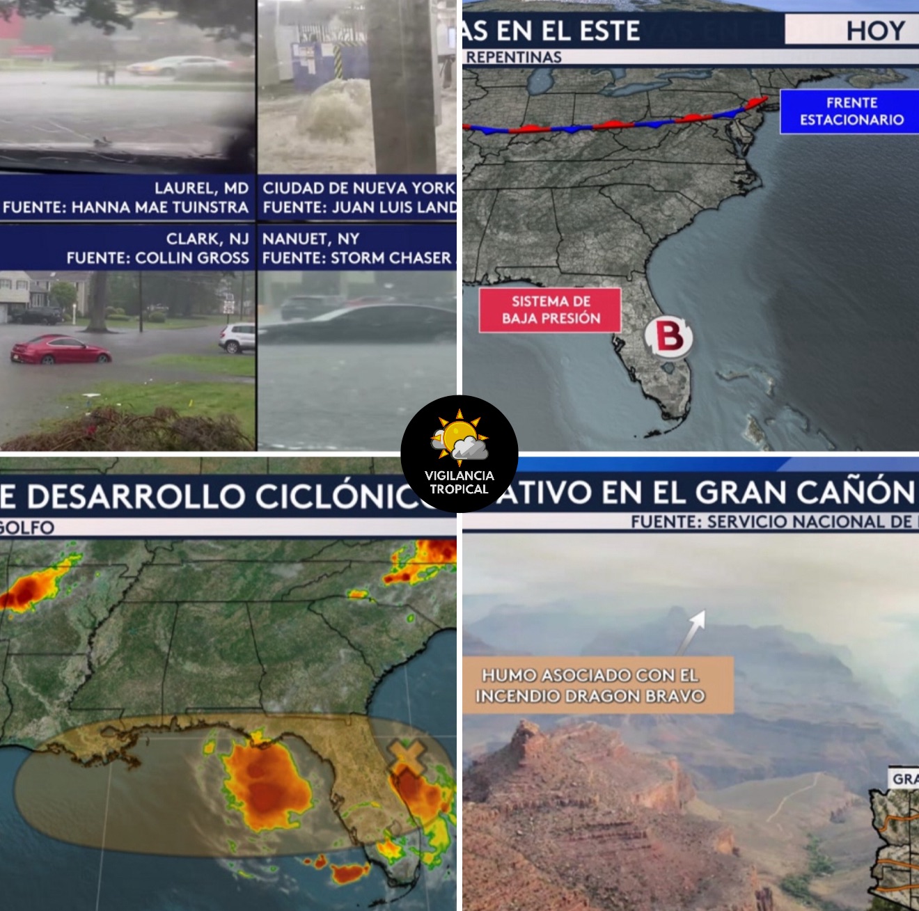 •Vemos algunos vídeos impresionantes de las inundaciones significativas que ocurrieron ayer en el noreste del país. Hubo vehículos varados en las aguas de inundación como pueden ver en las imágenes que fueron tomadas en Laurel, Maryland; Clark, Nueva jersey; y Nanuet, Nueva York. ¡Las inundaciones fueron tan intensas en la ciudad de Nueva York que el agua se estaba escapando del drenaje en los metros!
