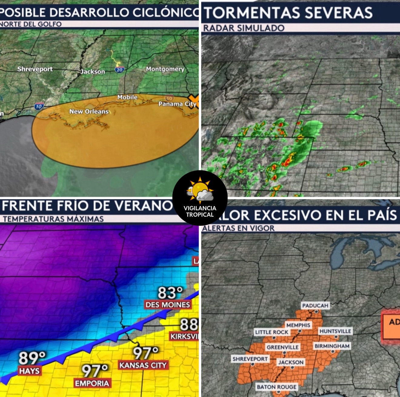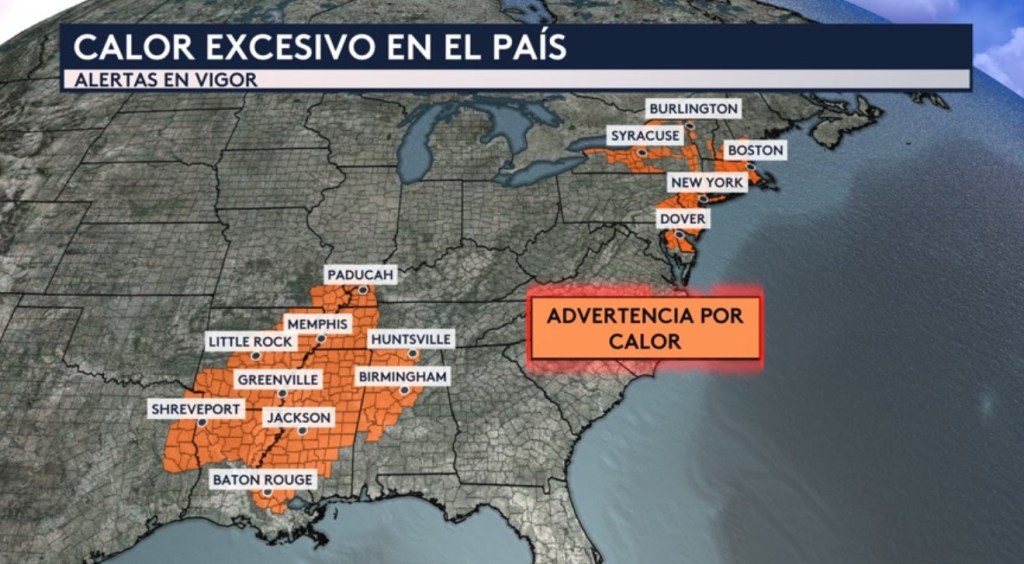•Hay advertencias por calor en vigor para partes del sur y noreste del país hoy. Incluye ciudades como Baton Rouge, Jackson, Little Rock, Memphis, Huntsville, Philadelphia, Nueva York y Boston.