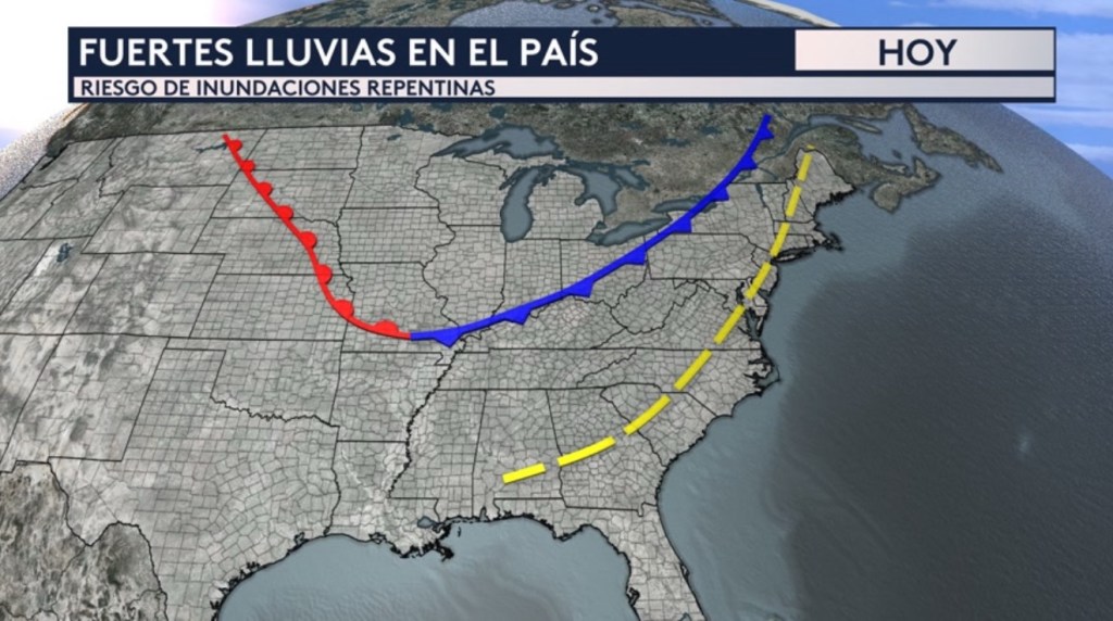 •Tanto un frente frio como una vaguada en los niveles altos de la atmósfera estarán trayendo mal tiempo y la posibilidad de fuertes aguaceros a gran parte del este del país para esta jornada del miércoles.