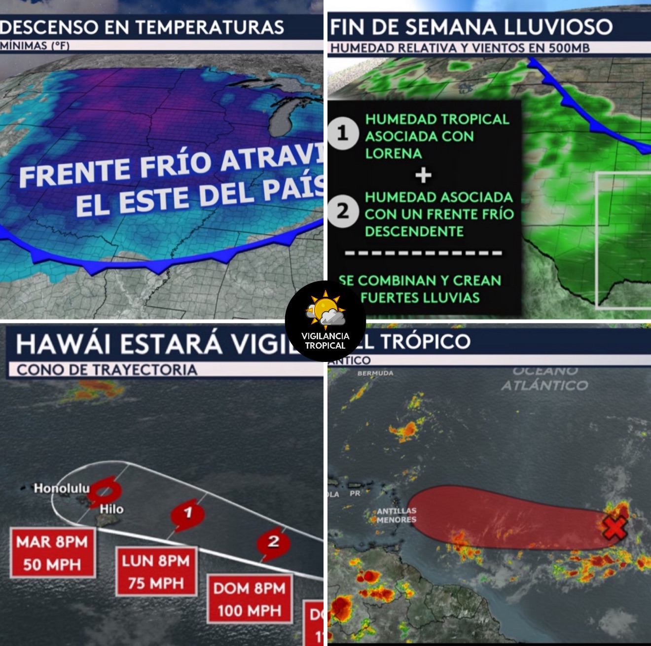 •Humedad tropical asociada con lo que ahora son los remanentes de lo que fue el Huracán Lorena se combinará con humedad asociada con un frente frío descendente, trayendo la amenaza de fuertes lluvias al sur del país para el fin de semana.
