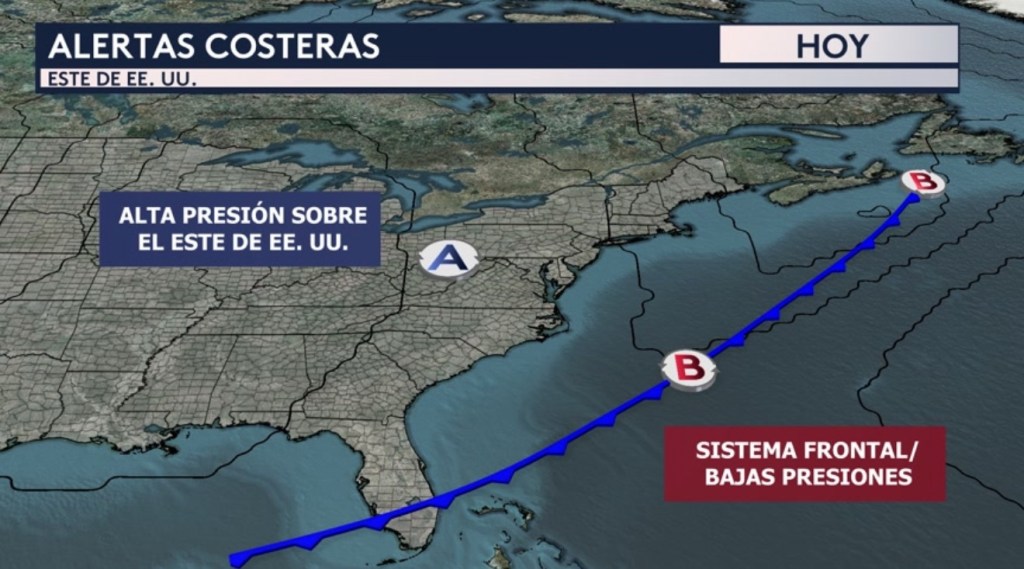 •Hoy tendremos un sistema de alta presión dominando el tiempo sobre el este de EE. UU. Al sur de esta alta presión y justamente fuera de la costa este del país se encontrará un sistema frontal/bajas presiones.