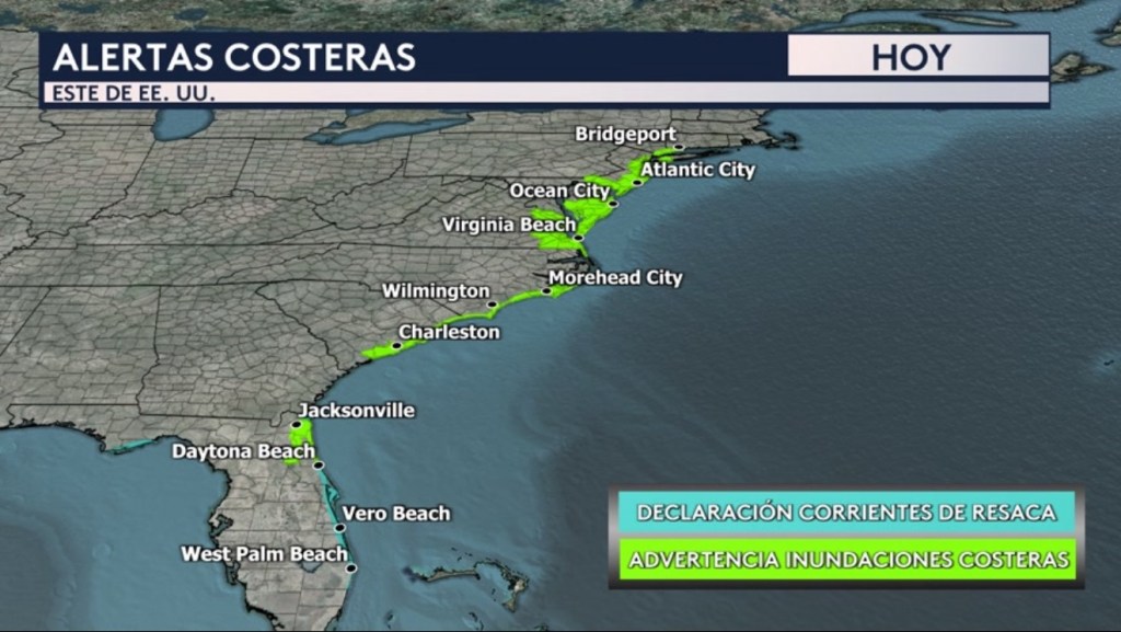 •Debido a esto flujo hacia tierra, tendremos declaraciones por corrientes de resaca para la costa este de Florida. Desde el norte de Florida hacia el norte a lo largo de la costa este del país hasta Connecticut tendremos advertencias por inundaciones costeras en vigor debido a las mareas reales. Las peores inundaciones costeras pudieran ocurrir 2 horas antes o después de la marea alta del día.