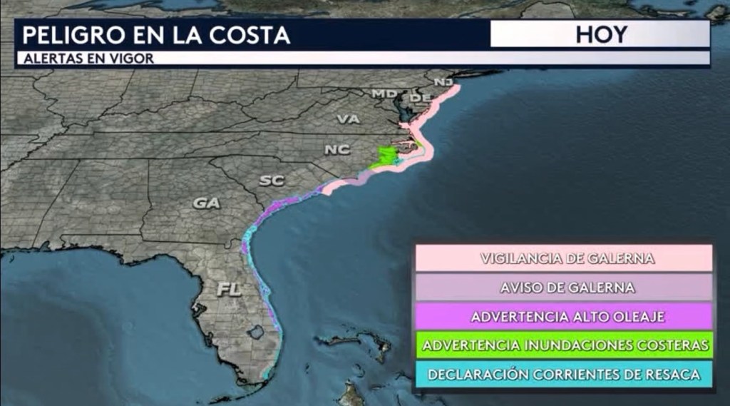 •Aunque no estará tocando tierra, ya estamos observando la presencia de una densa columna de humedad tropical asociada con Imelda que se encuentra sobre el sureste del país. Esto provocará de que partes de los estados de Florida, Georgia, Carolina del Sur y Carolina del Norte estén bajo un riesgo mínimo de nivel 1 de 4 de inundaciones repentinas. Incluye ciudades como Daytona Beach y Jacksonville en Florida, Savannah y Augusta en Georgia, Charleston en Carolina del Sur y Raleigh y Charlotte en Carolina del Norte.