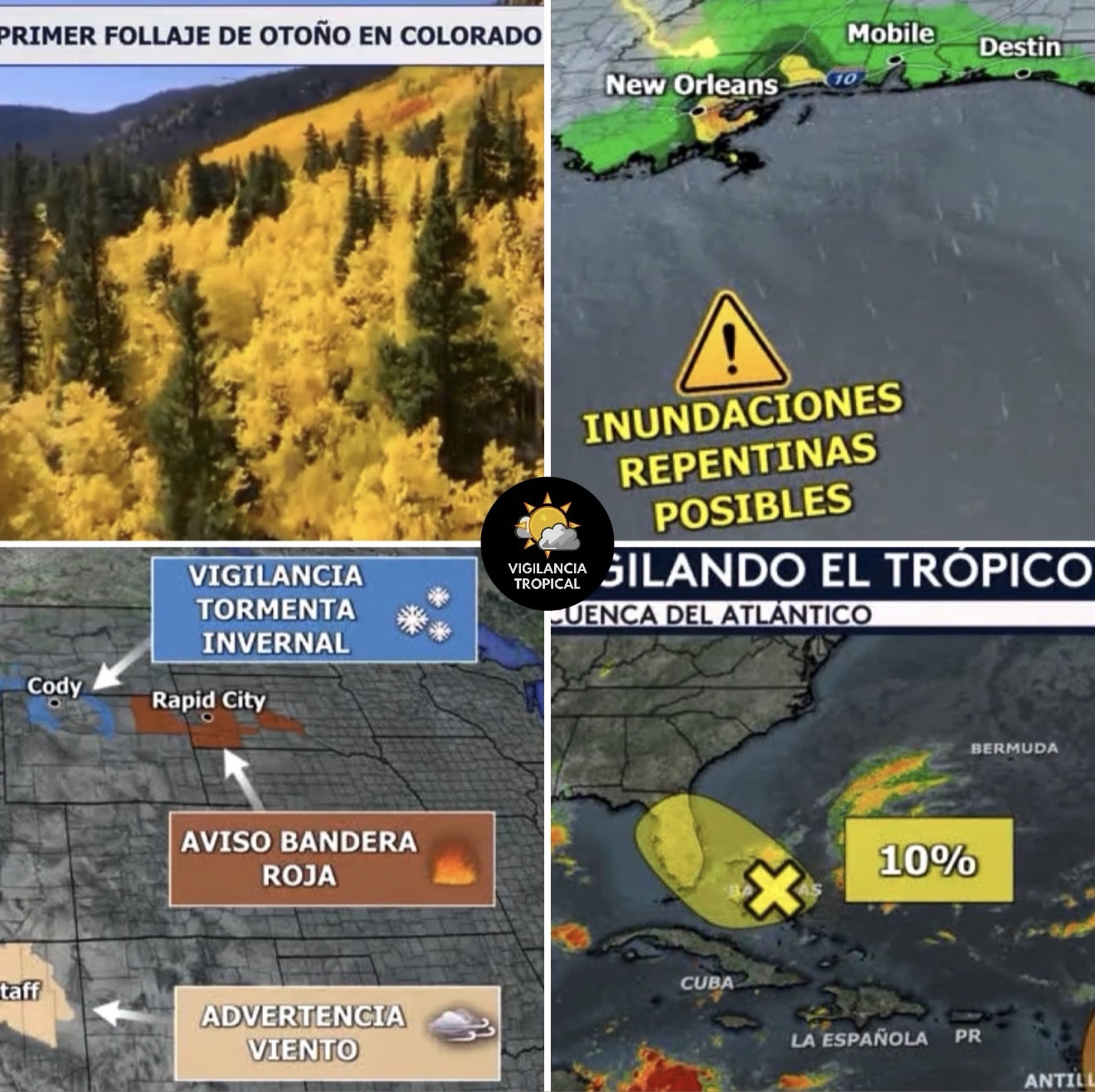 •Si vemos a nuestro mapa de follaje en Estados Unidos, es completamente normal de que la región de las Montañas Rocosas, no solo las de Colorado sino la cordillera entera, vean esos primeros cambios en el color de los árboles. Además de las Rocosas, también es normal, según la climatología, que las Montañas Apalaches y el norte del Medio Oeste y Grandes Lagos empiecen a notar el follaje de otoño ahora en principios de octubre.