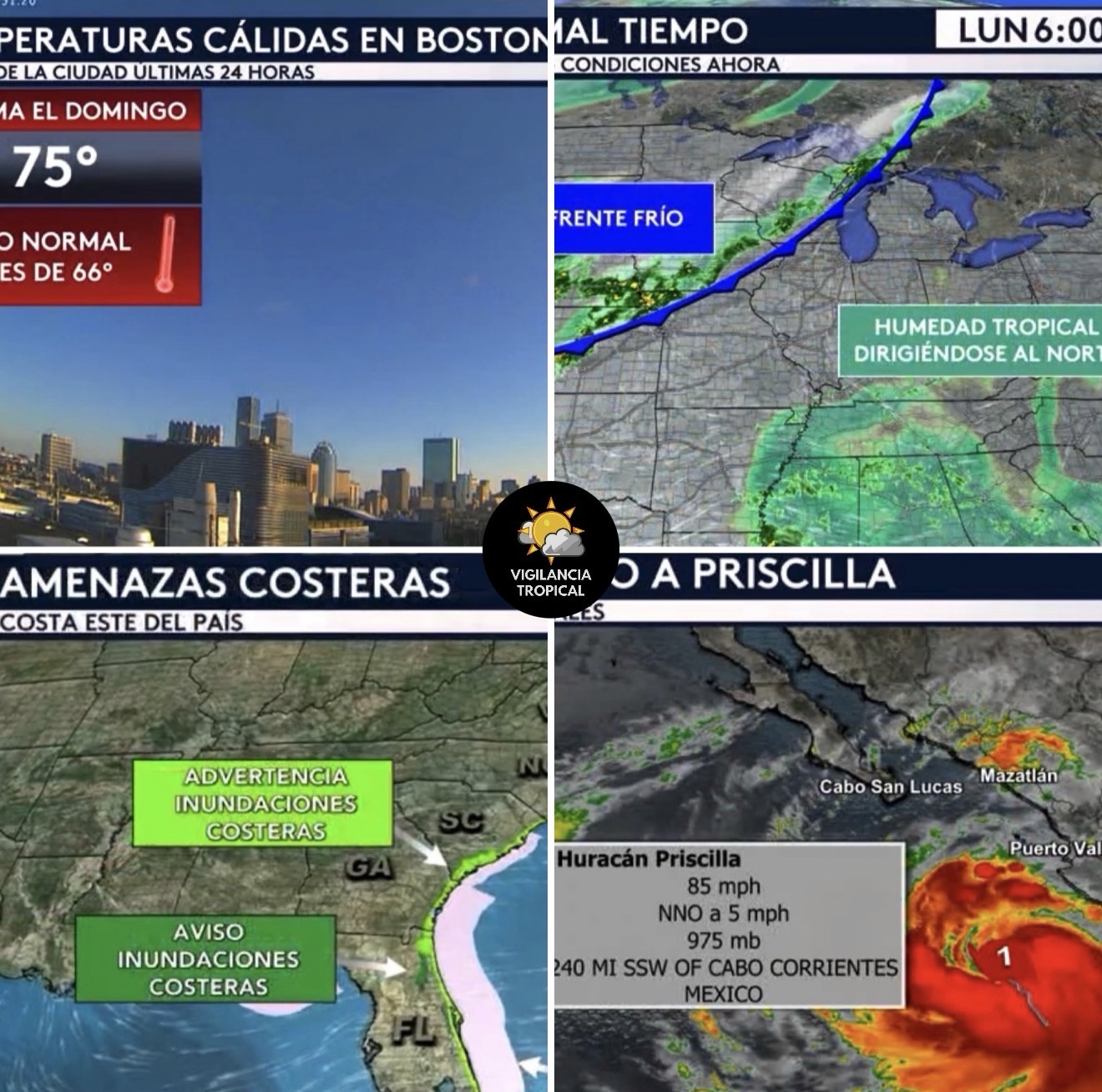 •La temperatura máxima ayer domingo llegó a los 75°F en la ciudad de Boston en Massachusetts. Eso representa una anomalía de 9°F, ya que lo normal para la fecha es de 66°F. Aquí pueden apreciar vistas de la ciudad en las últimas 24 horas.
