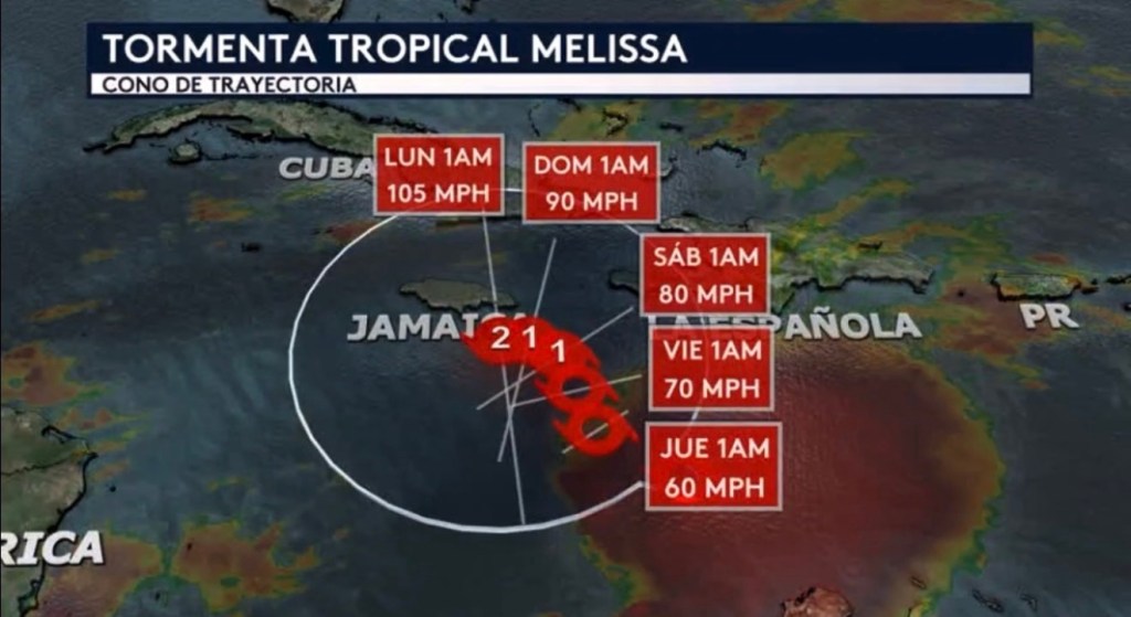 La Española, Jamaica, las Islas Caimanes y Cuba deben seguir vigilando el progreso de Melissa muy de cerca durante los próximos días.