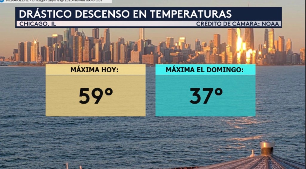 •Vemos una cámara en vivo desde el Lago Michigan con vistas del centro de Chicago, donde la temperatura máxima hoy será de 59°F, unos 6°F por encima del promedio para esta época del año. A partir del domingo, ¡esta máxima se desplomará a los 37°F a medida que todo el este del país se enfrentará con el primer enfriamiento significativo de la temporada!