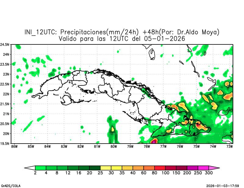 •Para este domingo 4 de enero del 2026 continuaremos con una madrugada muy fría en las regiones occidental y central del territorio cubano con la posibilidad de que las temperaturas sean notablemente frías en algunas localidades y además la probabilidad de precipitaciones en la región oriental sobre todo en horas de la tarde.