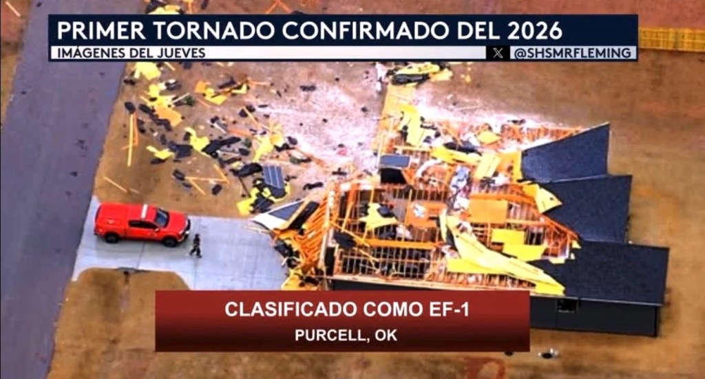 •Vemos algunas impresionantes imágenes de los daños que fueron causados ayer por el primer tornado confirmado del año nuevo, específicamente en la ciudad de Purcell, Oklahoma. Fue clasificado oficialmente anoche como un EF-1 según una evaluación de daños realizada por el equipo de investigación del Servicio Meteorológico Nacional en Norman, Oklahoma. Una casa, como pueden ver en la primera imagen, sufrió daños significativos donde vio su techo ser completamente arrancando de la propiedad. Otra casa también sufrió los mismos daños mientras que árboles estaban caídos y rotos.