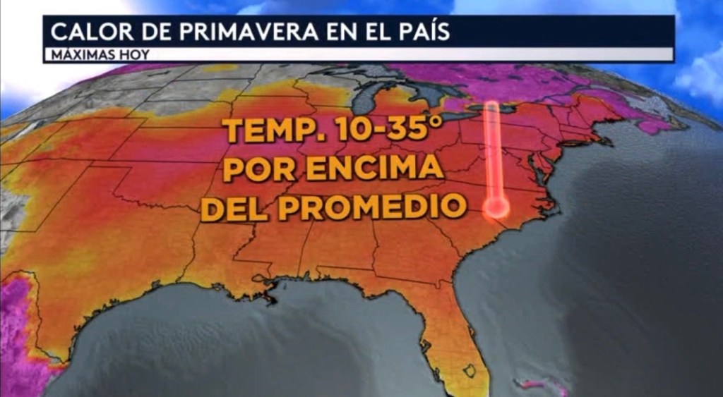 •Hoy seguiremos teniendo este calor de primavera presente a través de la mitad este de la nación con temperaturas máximas esta tarde siendo de entre 10 y hasta 35 grados por encima del promedio para esta época del año. Ciudades como McAllen, Texas; Nashville, Tennessee; New Orleans, Louisiana; Kansas City, Missouri; Raleigh, Carolina del Norte; Louisville, Kentucky y Bangor, Maine tendrán la oportunidad de romper un récord diario (10 de marzo) de temperatura máxima hoy. ¡Tanto Kansas City como Washington DC estarán llegando al medio rango de los 80°F! Tampa, Florida estará casi coqueando con 90 grados esta tarde.