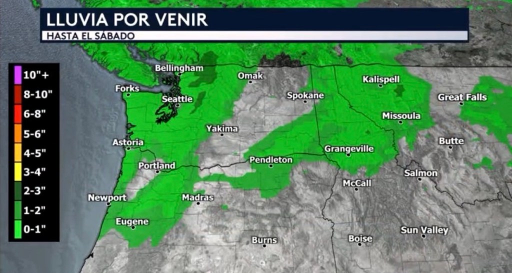 •No estamos esperando mucha lluvia adicional, principalmente manteniéndose por debajo de la una pulgada excepto en algunas áreas aisladas en los Cascades y el norte de las Rocosas donde pudiéramos ver acumulados sobrepasando una pulgada y posiblemente alcanzando las dos pulgadas.