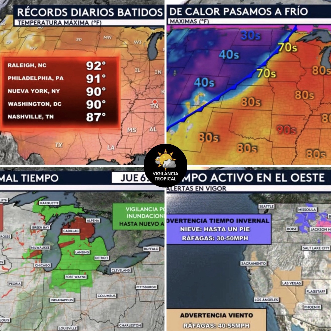 •Para la tarde del domingo 1 de febrero se pronostican temperaturas máximas entre 12-15 °C en la mitad occidental del país o sea desde Pinar del Río hasta Sancti Spíritus fundamental, incluso se observan temperaturas a la 1:00pm por debajo de los 12 °C en localidades de Cienfuegos, Villa Clara y Matanzas, producto al viento la sensación térmica será aún menor. En el resto del país se prevén máximas entre 17-20 °C, superiores en zonas costeras e inferiores en el interior.