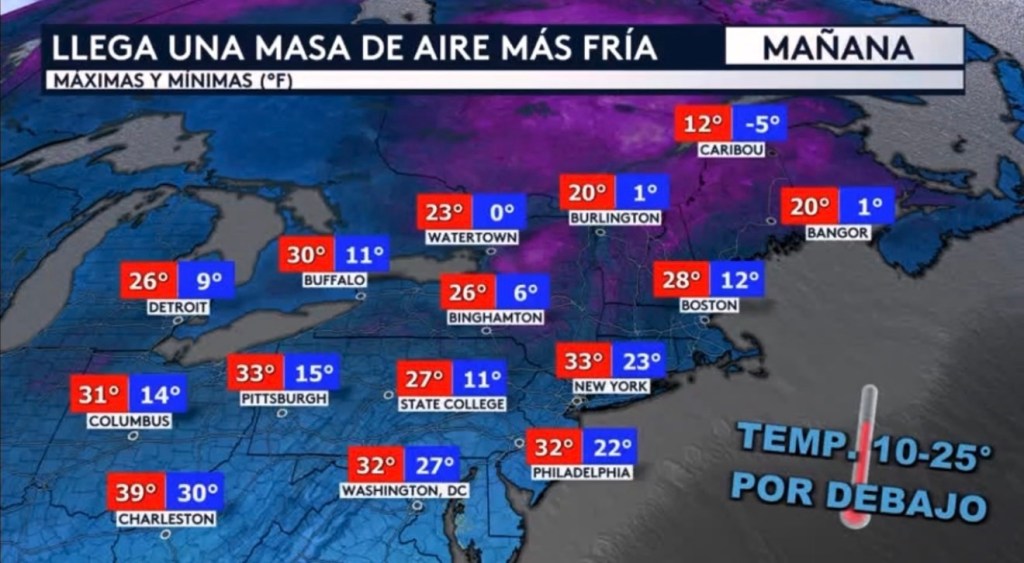 •De un extremo al otro. Seguiremos viendo este ascenso en las temperaturas durante los próximos días, y de hecho, ¡el viernes pudiéramos estar batiendo récords de temperatura mínima! A diferencia de las mañanas anteriores, en las que estábamos cerca de batir récords de temperaturas mínimas, esta vez estaremos rozando los récords de temperaturas mínimas cálidas, lo que significa que estas podrían ser las temperaturas mínimas más altas jamás registradas para la fecha. En total, 21 ciudades tendrán la oportunidad de batir un récord de mínima cálida el viernes por la mañana, incluyendo lugares como la ciudad de Nueva York y Washington DC.