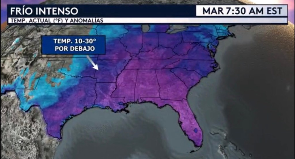 Además de esta nieve, también veremos hielo acumulable a través de partes de Oklahoma y Arkansas al igual que en los Apalaches, el Valle Superior del Río Ohio y en partes del Atlántico Medio y Nueva Inglaterra justamente al interior de la corredor de la interestatal 95. Solo con un glaseado de hielo de hasta un cuarto de pulgada podemos ver interrupciones mayores en el viaje, pero cuando estamos hablando de acumulados de hasta media pulgada que se pronostican en el sur de los Apalaches y partes del este del Atlántico Medio y el sur de Nueva Inglaterra, empezamos a introducir el potencial de impactos significativos que incluyen los árboles sufriendo daños y la ocurrencia de apagones aislados.