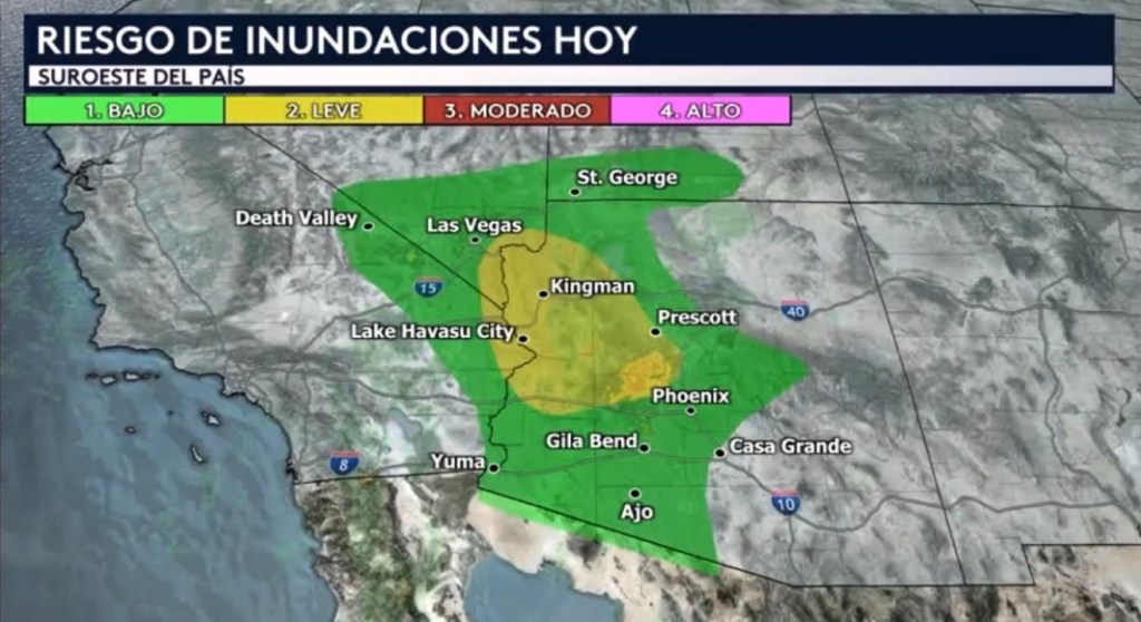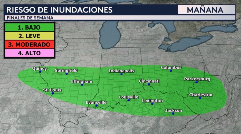 •Algunos de los aguaceros asociados con esta tormenta invernal que estamos pronosticando para el sur del Valle del Río Mississippi y en partes del sureste pudieran ser fuertes y producir instantes aislados de inundaciones repentinas en cualquier lugar sombreado con el color verde. Este riesgo se extenderá desde el sureste de Texas hasta el centro de Georgia, incluyendo ciudades como Houston, New Orleans, Mobile, Montgomery y Atlanta.