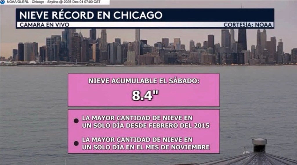 •Vemos una cámara en vivo desde Chicago, donde este sábado pasado se registraron 8.4 pulgadas de nieve tras el paso de una potente tormenta invernal. ¡Fue la mayor cantidad de nieve que ha caído en un solo día en la ciudad de los vientos desde febrero del 2015 y la mayor cantidad que ha caído en un solo día en el mes de noviembre en los registros!