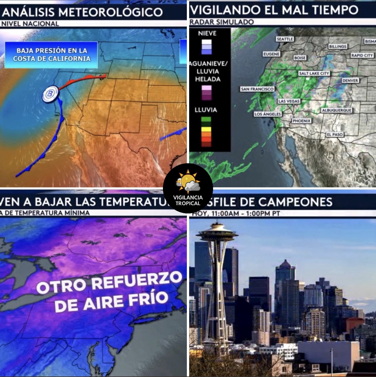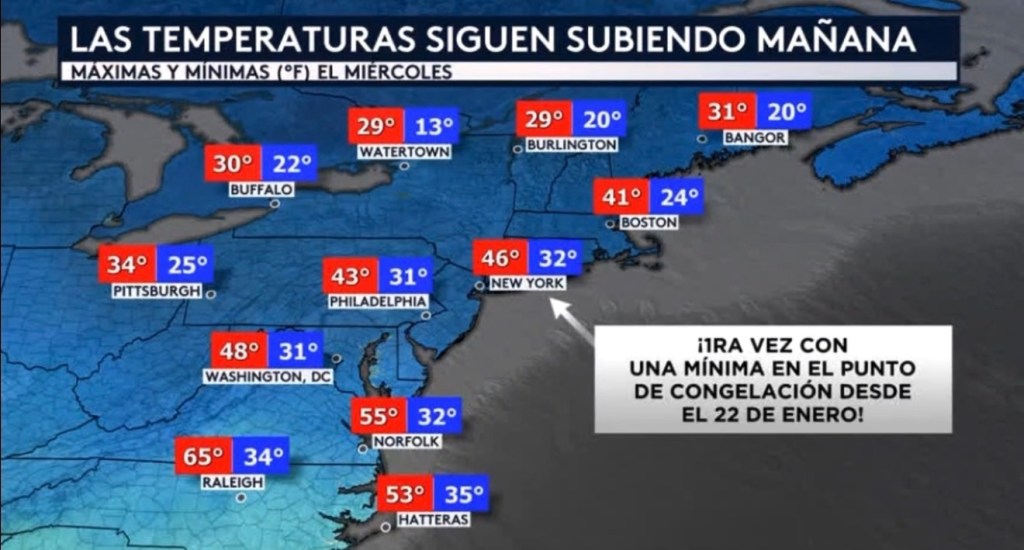 •Vemos una cámara en vivo desde Denver, Colorado esta mañana donde estos meses de invierno han sido muy atípicos con respecto a las temperaturas que hemos experimentado. En lo que va de esta temporada de invierno (desde el 1 de diciembre del 2025) hemos tenido 32 días con una temperatura máxima de 60 grados o mayor. El récord histórico para una sola temporada de invierno es 34 días, y si miramos al pronóstico de los próximos días se puede observar cómo las máximas estarán coqueando con los 60 grados desde hoy hasta el sábado y subiendo bien por encima de los 60 grados para el domingo. Ese récord de 34 días pudiera ser batido tan pronto como para finales de semana.