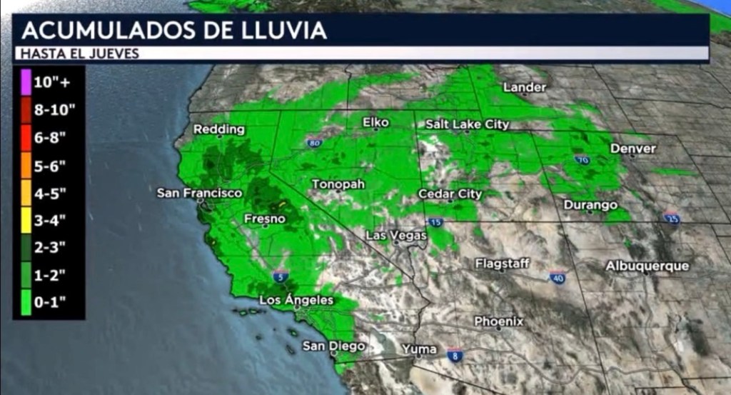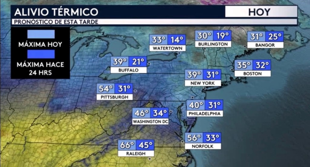 •Las temperaturas no solo serán por encima del promedio hoy en Denver sino también a través de todo el centro de Estados Unidos y tan al oeste como hacia la Gran Cuenca y el Desierto Suroeste. Máximas esta tarde serán de entre 10 a 25 grados por encima del promedio para esta época del año, ¡donde ciudades como Bismarck, Dakota del Norte estarán llegando a los 50 grados cuando la máxima normal que deben estar registrando en esta fecha es de 26 grados! Dallas y Oklahoma City también estarán sintiendo este calor primaveral con máximas hoy en el medio rango de los 70 grados.